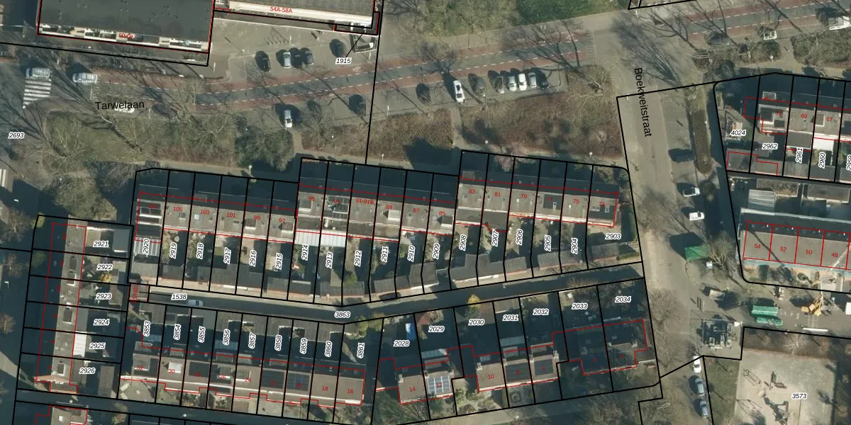 Het perceel waarop Tarwelaan 87 staat heeft een oppervlakte van 183 m². Dit is een middelgroot perceel. De perceeloppervlakte wordt geregistreerd door het Kadaster. Gedetailleerde informatie over de maten van dit perceel kunt u vinden in het rapport Kadastrale kaart met maatvoering van Tarwelaan 87.