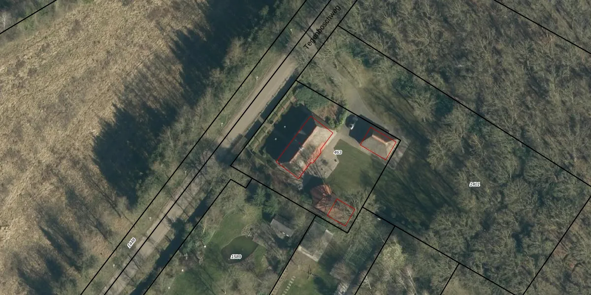 Het perceel waarop Tegenboschweg 7 staat heeft een oppervlakte van 1566 m². Dit is een zeer groot perceel. De perceeloppervlakte wordt geregistreerd door het Kadaster. Gedetailleerde informatie over de maten van dit perceel kunt u vinden in het rapport Kadastrale kaart met maatvoering van Tegenboschweg 7.