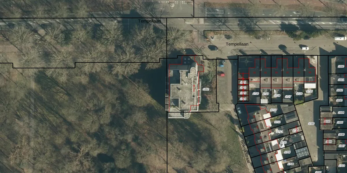 Tempellaan 183 is gelegen op kadastraal perceel WSL01M1892. Deze kadastrale aanduiding is uniek en wordt gebruikt door het Kadaster om eigendomsrechten en andere zakelijke rechten vast te leggen. Het perceel maakt onderdeel uit van de kadastrale gemeente Woensel.