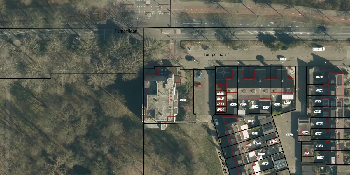 Tempellaan 99 is gelegen op kadastraal perceel WSL01M1892. Deze kadastrale aanduiding is uniek en wordt gebruikt door het Kadaster om eigendomsrechten en andere zakelijke rechten vast te leggen. Het perceel maakt onderdeel uit van de kadastrale gemeente Woensel.