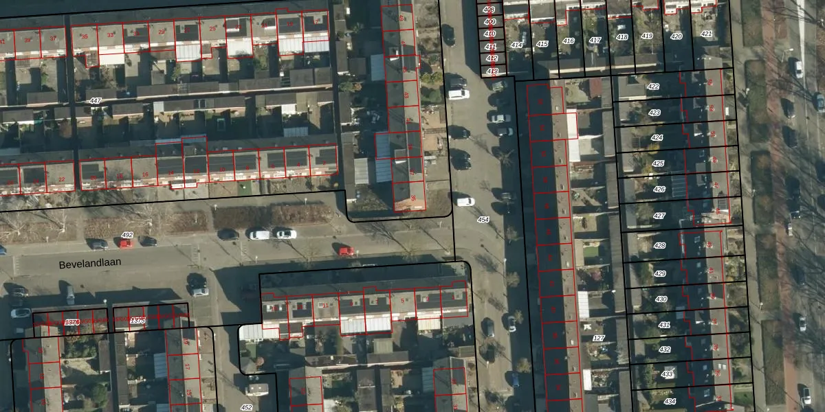 Terschellingstraat 35 is gelegen op kadastraal perceel WSL01R447. Deze kadastrale aanduiding is uniek en wordt gebruikt door het Kadaster om eigendomsrechten en andere zakelijke rechten vast te leggen. Het perceel maakt onderdeel uit van de kadastrale gemeente Woensel.