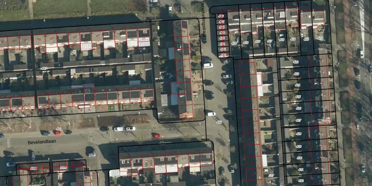 Terschellingstraat 39 is gelegen op kadastraal perceel WSL01R447. Deze kadastrale aanduiding is uniek en wordt gebruikt door het Kadaster om eigendomsrechten en andere zakelijke rechten vast te leggen. Het perceel maakt onderdeel uit van de kadastrale gemeente Woensel.