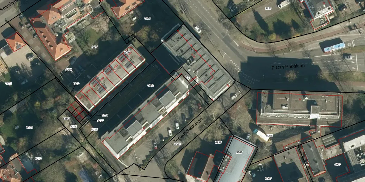 Tesselschadelaan 32 is gelegen op kadastraal perceel STM00A6082. Deze kadastrale aanduiding is uniek en wordt gebruikt door het Kadaster om eigendomsrechten en andere zakelijke rechten vast te leggen. Het perceel maakt onderdeel uit van de kadastrale gemeente Stratum.