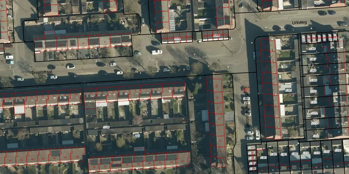 Texelstraat 1 is gelegen op kadastraal perceel WSL01P1744. Deze kadastrale aanduiding is uniek en wordt gebruikt door het Kadaster om eigendomsrechten en andere zakelijke rechten vast te leggen. Het perceel maakt onderdeel uit van de kadastrale gemeente Woensel.