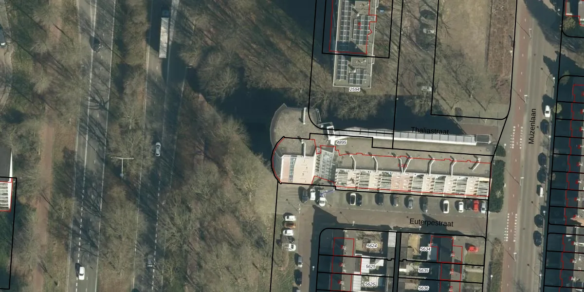 Het perceel waarop Thaliastraat 35 staat heeft een oppervlakte van 1187 m². Dit is een zeer groot perceel. De perceeloppervlakte wordt geregistreerd door het Kadaster. Gedetailleerde informatie over de maten van dit perceel kunt u vinden in het rapport Kadastrale kaart met maatvoering van Thaliastraat 35.