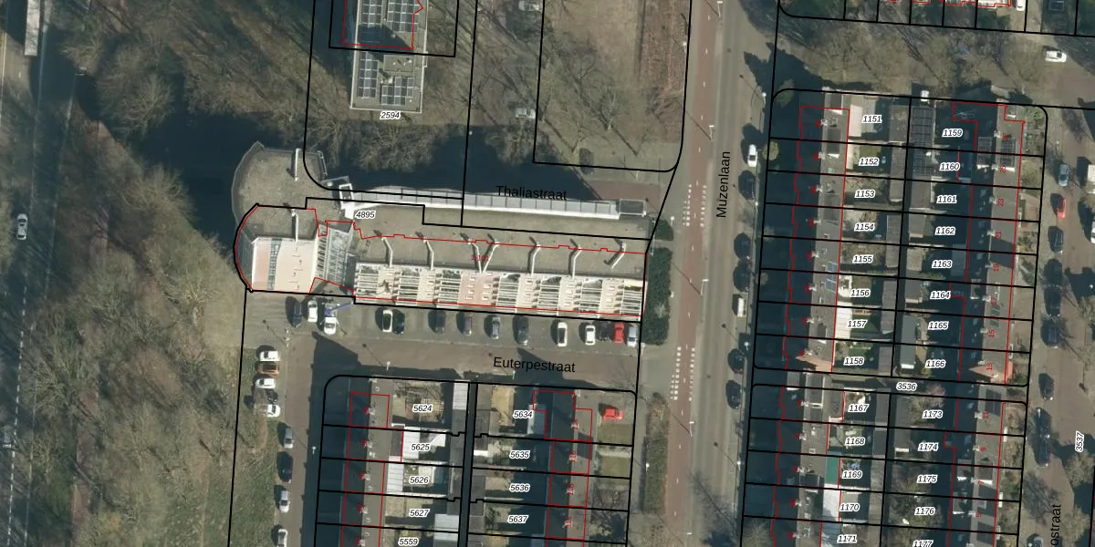 Het perceel waarop Thaliastraat 41 staat heeft een oppervlakte van 1187 m². Dit is een zeer groot perceel. De perceeloppervlakte wordt geregistreerd door het Kadaster. Gedetailleerde informatie over de maten van dit perceel kunt u vinden in het rapport Kadastrale kaart met maatvoering van Thaliastraat 41.