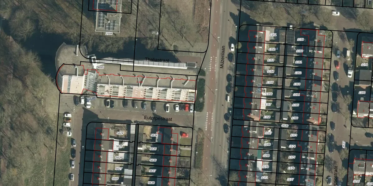 Het perceel waarop Thaliastraat 55 staat heeft een oppervlakte van 1187 m². Dit is een zeer groot perceel. De perceeloppervlakte wordt geregistreerd door het Kadaster. Gedetailleerde informatie over de maten van dit perceel kunt u vinden in het rapport Kadastrale kaart met maatvoering van Thaliastraat 55.