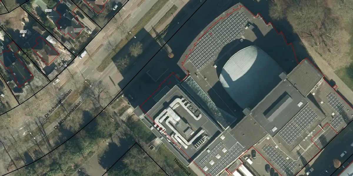 Het perceel waarop Theaterpad 3 staat heeft een oppervlakte van 12,2 ha. Dit is een zeer groot perceel. De perceeloppervlakte wordt geregistreerd door het Kadaster. Gedetailleerde informatie over de maten van dit perceel kunt u vinden in het rapport Kadastrale kaart met maatvoering van Theaterpad 3.
