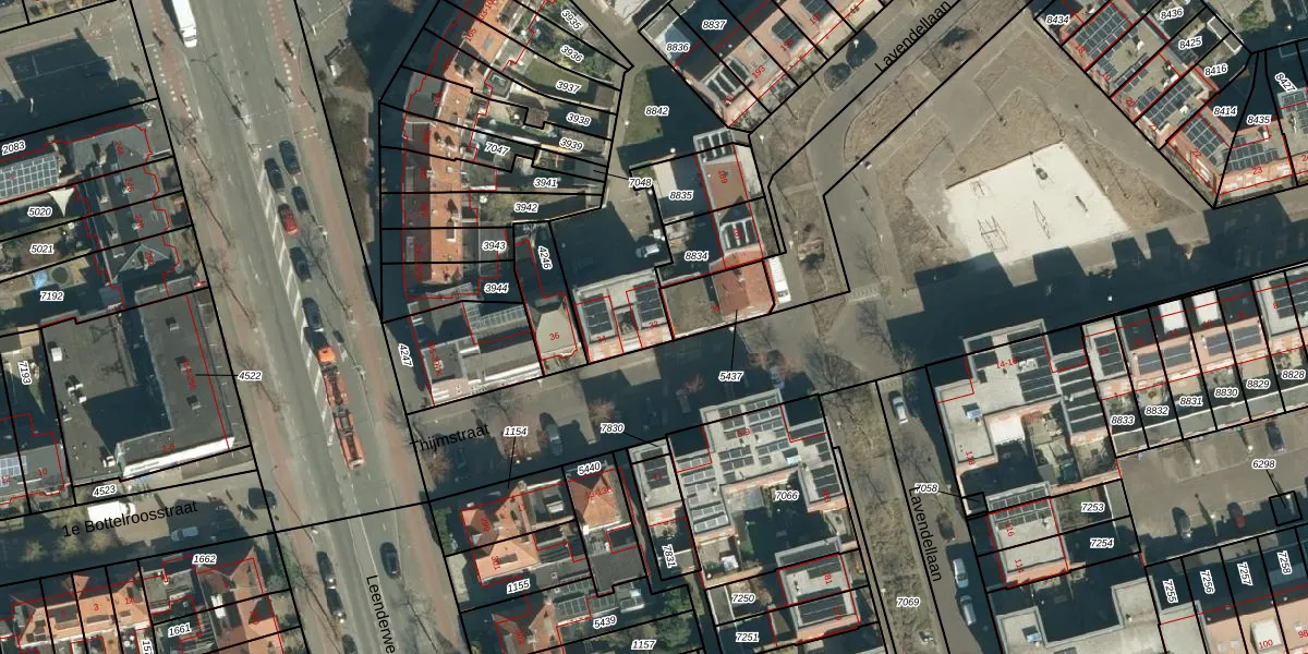 Het perceel waarop Thijmstraat 32 staat heeft een oppervlakte van 3086 m². Dit is een zeer groot perceel. De perceeloppervlakte wordt geregistreerd door het Kadaster. Gedetailleerde informatie over de maten van dit perceel kunt u vinden in het rapport Kadastrale kaart met maatvoering van Thijmstraat 32.