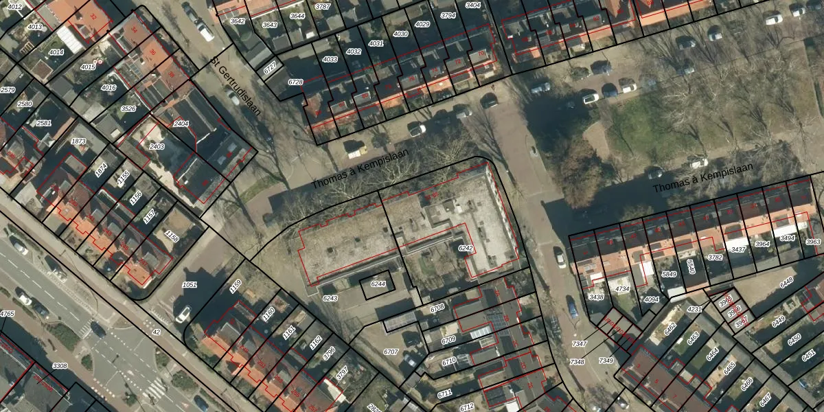 Het perceel waarop Thomas à Kempislaan 63 staat heeft een oppervlakte van 855 m². Dit is een groot perceel. De perceeloppervlakte wordt geregistreerd door het Kadaster. Gedetailleerde informatie over de maten van dit perceel kunt u vinden in het rapport Kadastrale kaart met maatvoering van Thomas à Kempislaan 63.