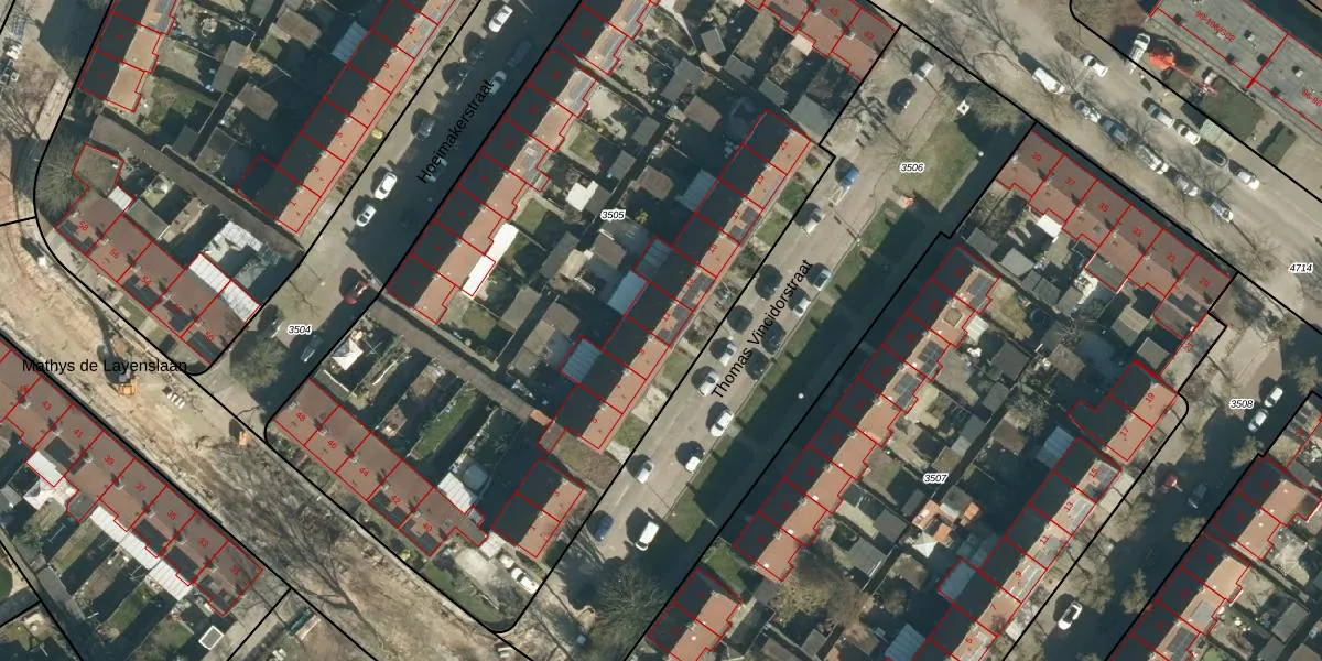 Thomas Vincidorstraat 11 is gelegen op kadastraal perceel WSL01G3505. Deze kadastrale aanduiding is uniek en wordt gebruikt door het Kadaster om eigendomsrechten en andere zakelijke rechten vast te leggen. Het perceel maakt onderdeel uit van de kadastrale gemeente Woensel.