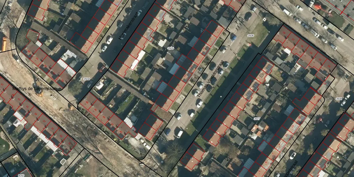Thomas Vincidorstraat 9 is gelegen op kadastraal perceel WSL01G3505. Deze kadastrale aanduiding is uniek en wordt gebruikt door het Kadaster om eigendomsrechten en andere zakelijke rechten vast te leggen. Het perceel maakt onderdeel uit van de kadastrale gemeente Woensel.