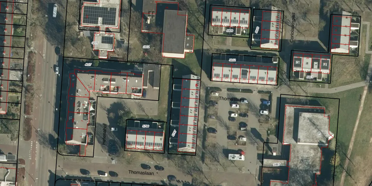 Het perceel waarop Thomaslaan 21 staat heeft een oppervlakte van 604 m². Dit is een groot perceel. De perceeloppervlakte wordt geregistreerd door het Kadaster. Gedetailleerde informatie over de maten van dit perceel kunt u vinden in het rapport Kadastrale kaart met maatvoering van Thomaslaan 21.