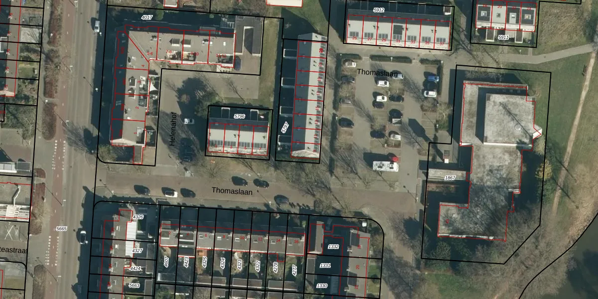 Thomaslaan 9 is gelegen op kadastraal perceel WSL01L5797. Deze kadastrale aanduiding is uniek en wordt gebruikt door het Kadaster om eigendomsrechten en andere zakelijke rechten vast te leggen. Het perceel maakt onderdeel uit van de kadastrale gemeente Woensel.