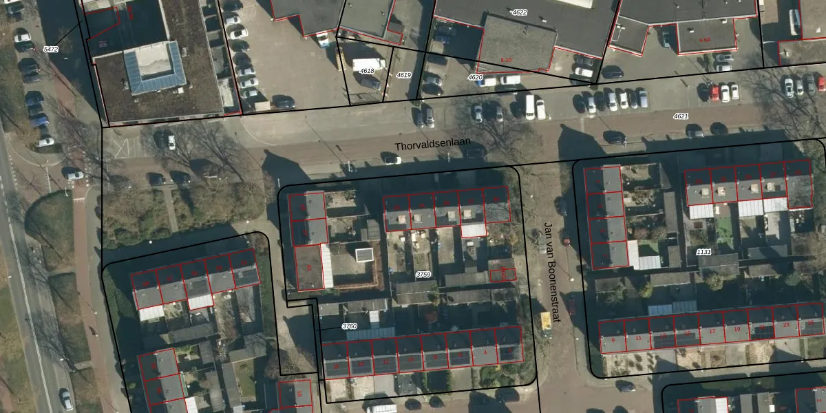 Het perceel waarop Thorvaldsenlaan 41 staat heeft een oppervlakte van 2940 m². Dit is een zeer groot perceel. De perceeloppervlakte wordt geregistreerd door het Kadaster. Gedetailleerde informatie over de maten van dit perceel kunt u vinden in het rapport Kadastrale kaart met maatvoering van Thorvaldsenlaan 41.