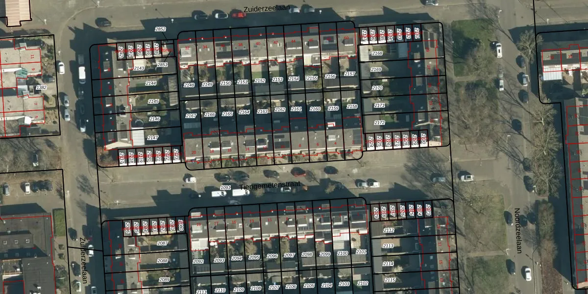 Gebruik de zoekbalk of klik op een perceel voor informatie over de adressen binnen dit perceel.