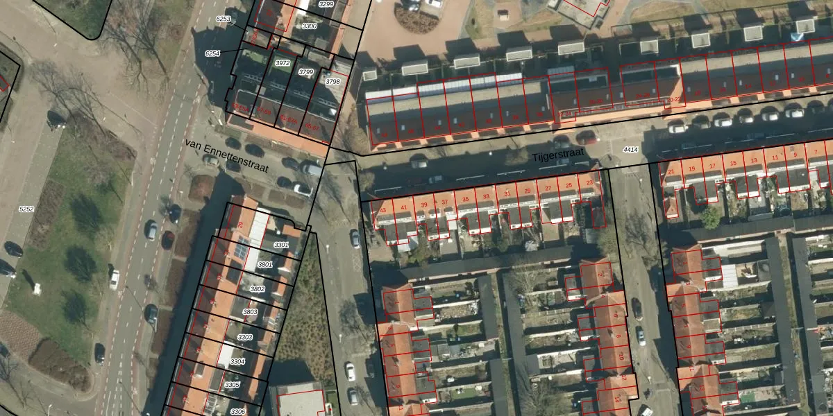 Tijgerstraat 39 is gelegen op kadastraal perceel STM00F3004. Deze kadastrale aanduiding is uniek en wordt gebruikt door het Kadaster om eigendomsrechten en andere zakelijke rechten vast te leggen. Het perceel maakt onderdeel uit van de kadastrale gemeente Stratum.