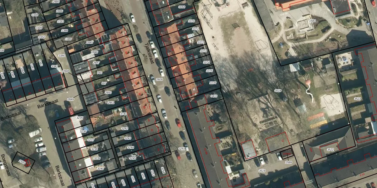 Gebruik de zoekbalk of klik op een perceel voor informatie over de adressen binnen dit perceel.