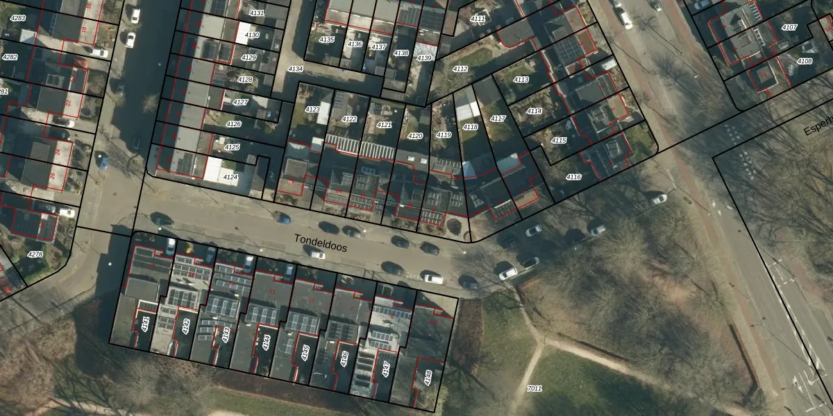 Gebruik de zoekbalk of klik op een perceel voor informatie over de adressen binnen dit perceel.