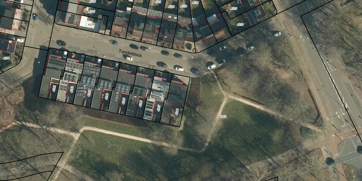 Tondeldoos 3 is gelegen op kadastraal perceel WSL01W4148. Deze kadastrale aanduiding is uniek en wordt gebruikt door het Kadaster om eigendomsrechten en andere zakelijke rechten vast te leggen. Het perceel maakt onderdeel uit van de kadastrale gemeente Woensel.