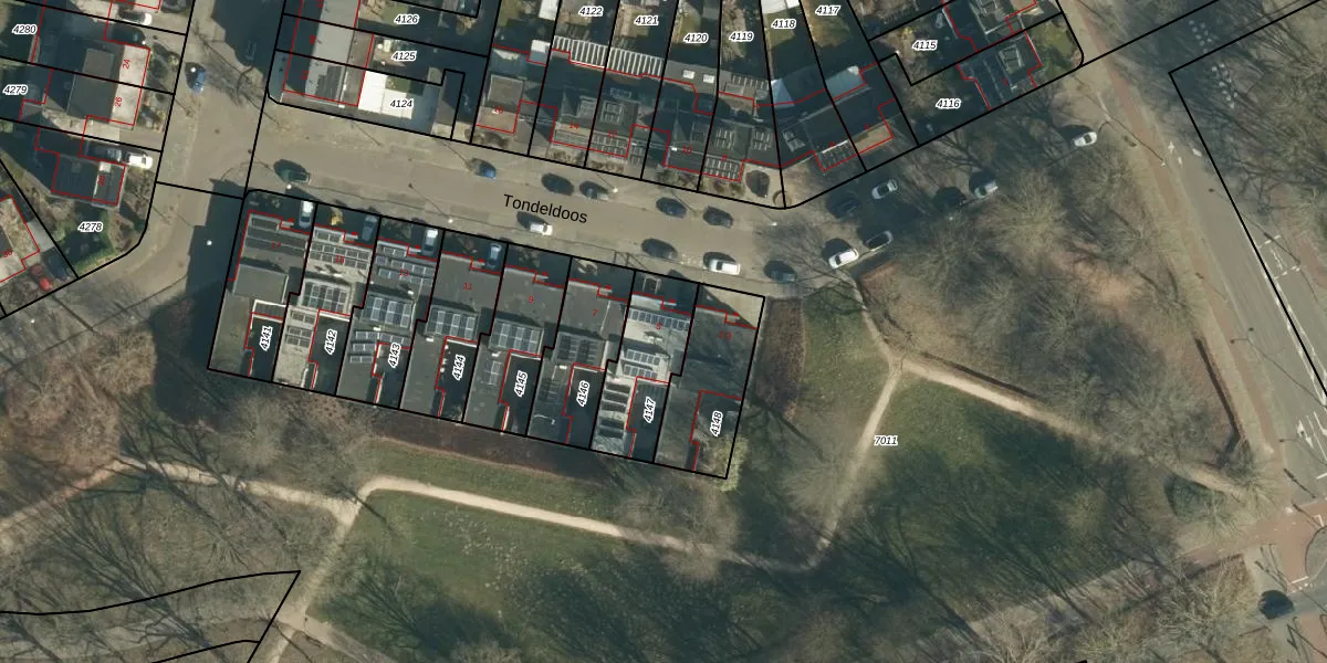 Tondeldoos 5 is gelegen op kadastraal perceel WSL01W4147. Deze kadastrale aanduiding is uniek en wordt gebruikt door het Kadaster om eigendomsrechten en andere zakelijke rechten vast te leggen. Het perceel maakt onderdeel uit van de kadastrale gemeente Woensel.