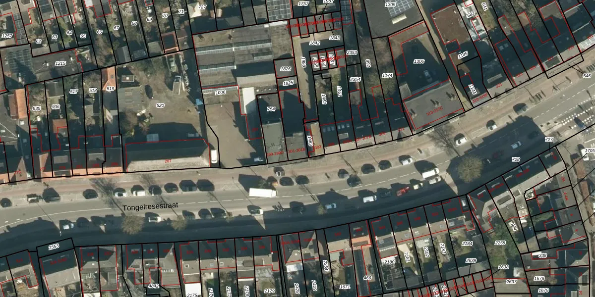 Tongelresestraat 301 is gelegen op kadastraal perceel TGR00F1825. Deze kadastrale aanduiding is uniek en wordt gebruikt door het Kadaster om eigendomsrechten en andere zakelijke rechten vast te leggen. Het perceel maakt onderdeel uit van de kadastrale gemeente Tongelre.