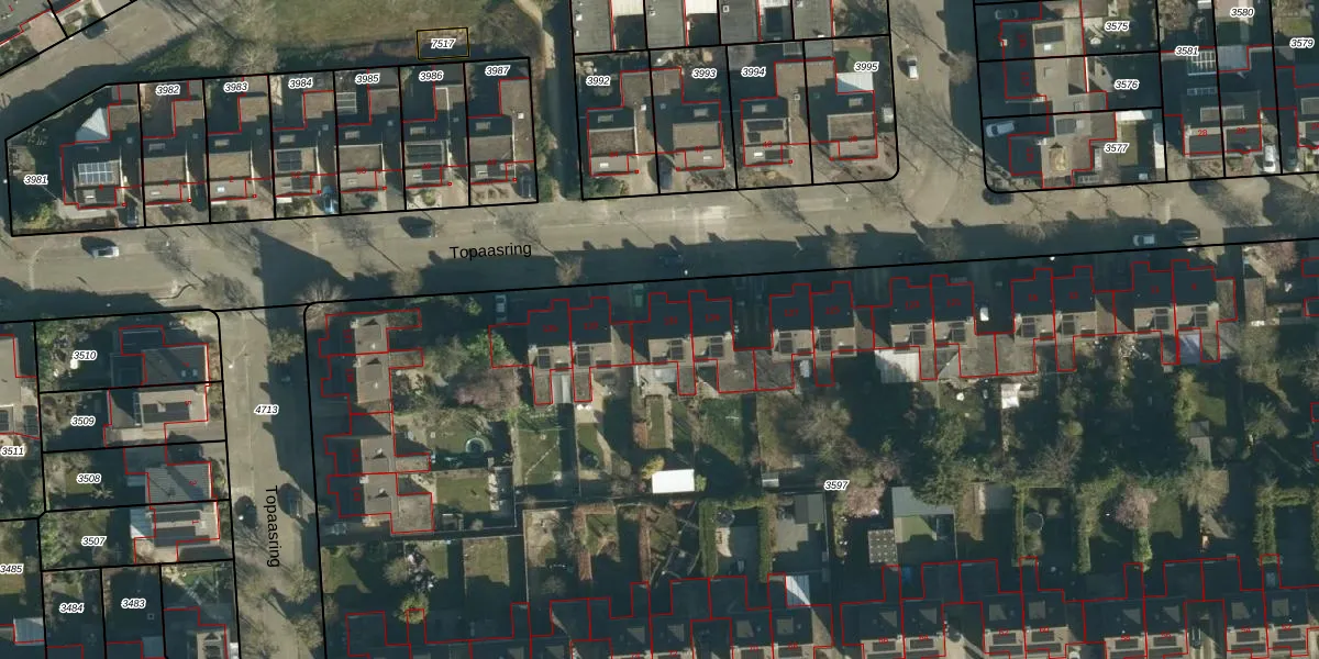 Topaasring 131 is gelegen op kadastraal perceel WSL01W3597. Deze kadastrale aanduiding is uniek en wordt gebruikt door het Kadaster om eigendomsrechten en andere zakelijke rechten vast te leggen. Het perceel maakt onderdeel uit van de kadastrale gemeente Woensel.