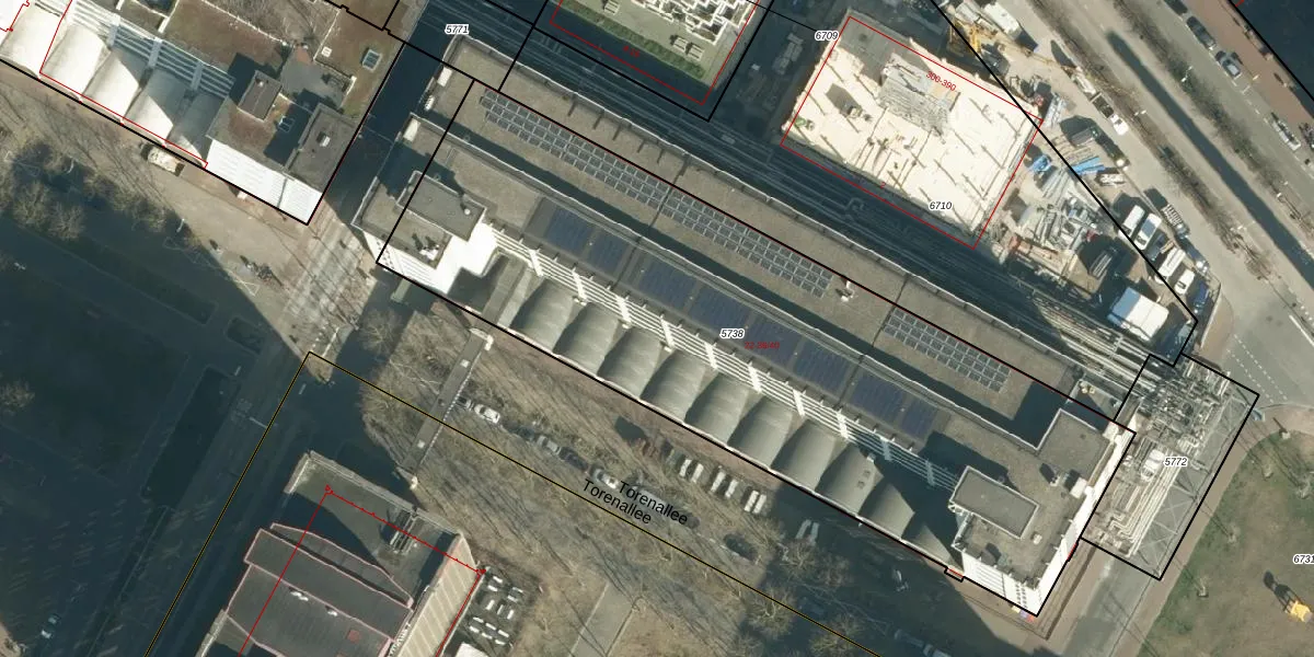 Het perceel waarop Torenallee 28-30 staat heeft een oppervlakte van 3611 m². Dit is een zeer groot perceel. De perceeloppervlakte wordt geregistreerd door het Kadaster. Gedetailleerde informatie over de maten van dit perceel kunt u vinden in het rapport Kadastrale kaart met maatvoering van Torenallee 28-30.