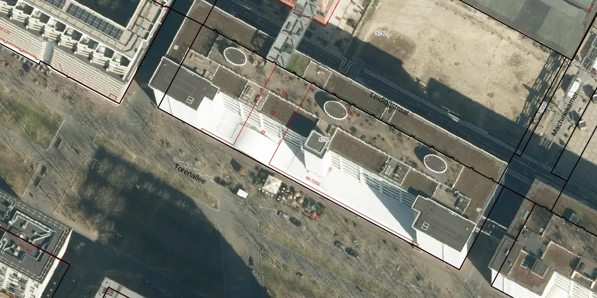 Het perceel waarop Torenallee 64-04 staat heeft een oppervlakte van 3638 m². Dit is een zeer groot perceel. De perceeloppervlakte wordt geregistreerd door het Kadaster. Gedetailleerde informatie over de maten van dit perceel kunt u vinden in het rapport Kadastrale kaart met maatvoering van Torenallee 64-04.