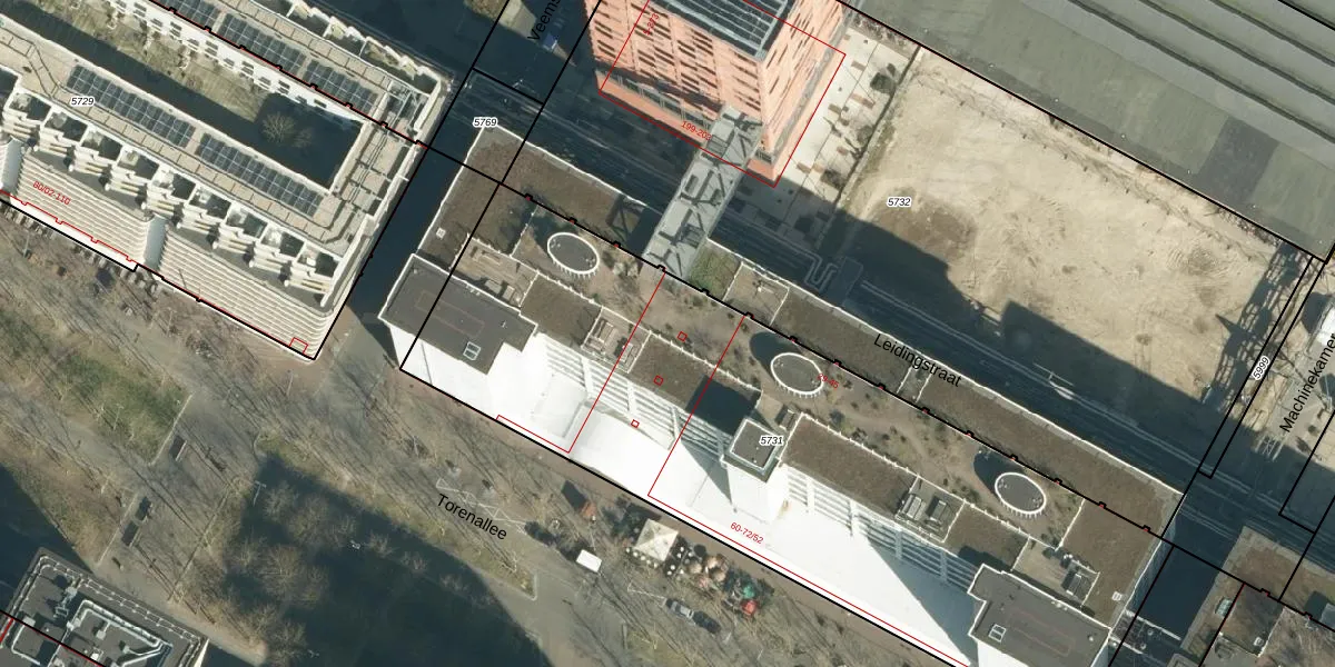 Het perceel waarop Torenallee 64-18 staat heeft een oppervlakte van 3638 m². Dit is een zeer groot perceel. De perceeloppervlakte wordt geregistreerd door het Kadaster. Gedetailleerde informatie over de maten van dit perceel kunt u vinden in het rapport Kadastrale kaart met maatvoering van Torenallee 64-18.