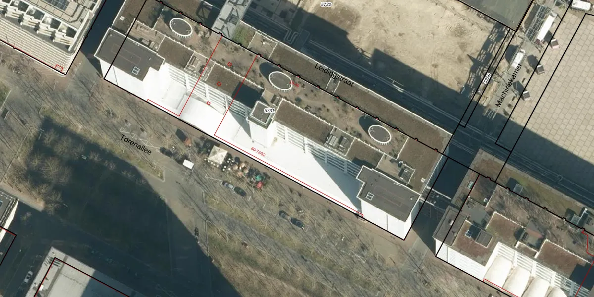 Het perceel waarop Torenallee 64-44 staat heeft een oppervlakte van 3638 m². Dit is een zeer groot perceel. De perceeloppervlakte wordt geregistreerd door het Kadaster. Gedetailleerde informatie over de maten van dit perceel kunt u vinden in het rapport Kadastrale kaart met maatvoering van Torenallee 64-44.