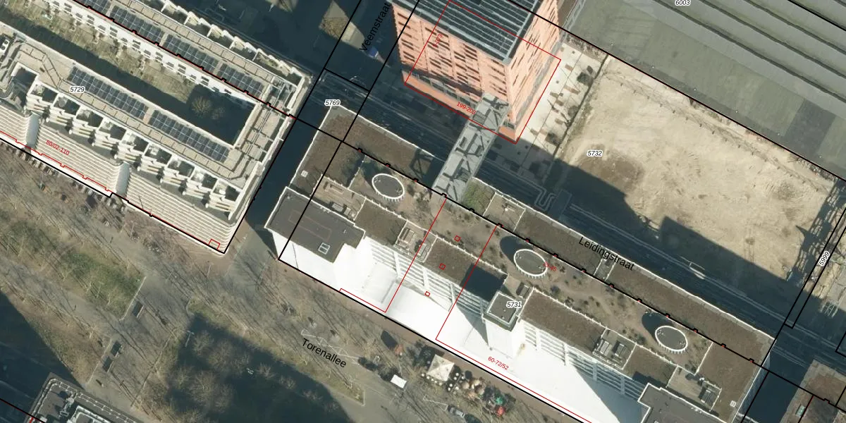 Het perceel waarop Torenallee 68-16 staat heeft een oppervlakte van 3638 m². Dit is een zeer groot perceel. De perceeloppervlakte wordt geregistreerd door het Kadaster. Gedetailleerde informatie over de maten van dit perceel kunt u vinden in het rapport Kadastrale kaart met maatvoering van Torenallee 68-16.