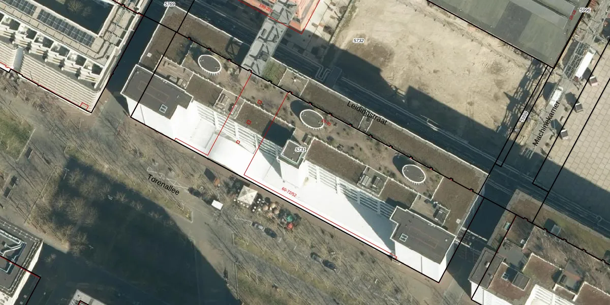 Het perceel waarop Torenallee 72-02 staat heeft een oppervlakte van 3638 m². Dit is een zeer groot perceel. De perceeloppervlakte wordt geregistreerd door het Kadaster. Gedetailleerde informatie over de maten van dit perceel kunt u vinden in het rapport Kadastrale kaart met maatvoering van Torenallee 72-02.