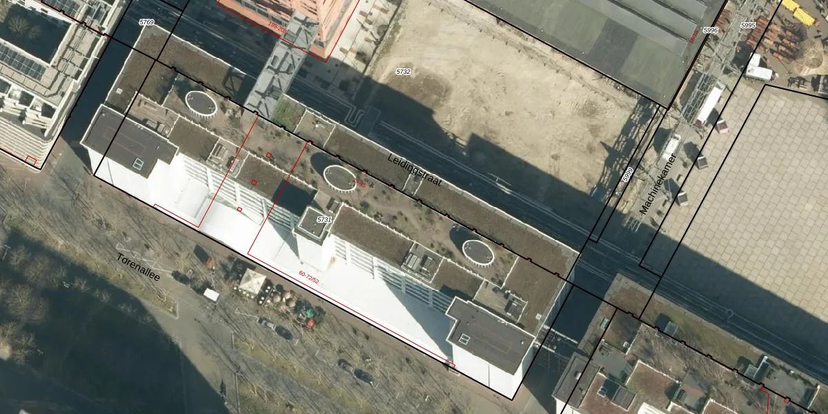 Het perceel waarop Torenallee 72-28 staat heeft een oppervlakte van 3638 m². Dit is een zeer groot perceel. De perceeloppervlakte wordt geregistreerd door het Kadaster. Gedetailleerde informatie over de maten van dit perceel kunt u vinden in het rapport Kadastrale kaart met maatvoering van Torenallee 72-28.