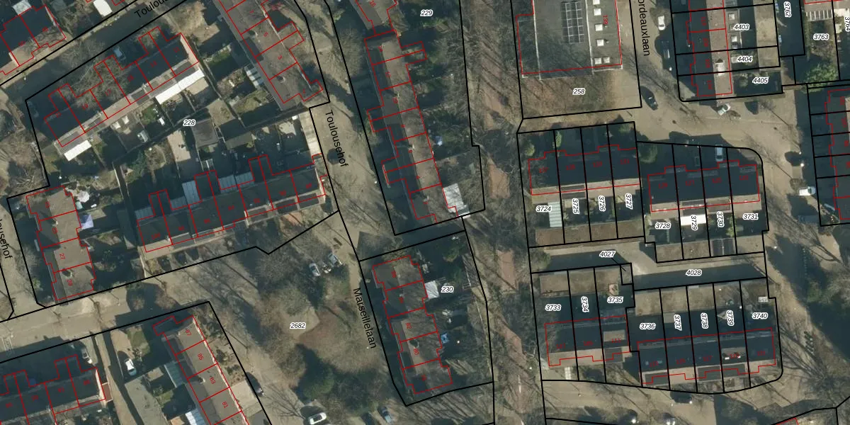 Toulousehof 2 is gelegen op kadastraal perceel WSL01S229. Deze kadastrale aanduiding is uniek en wordt gebruikt door het Kadaster om eigendomsrechten en andere zakelijke rechten vast te leggen. Het perceel maakt onderdeel uit van de kadastrale gemeente Woensel.