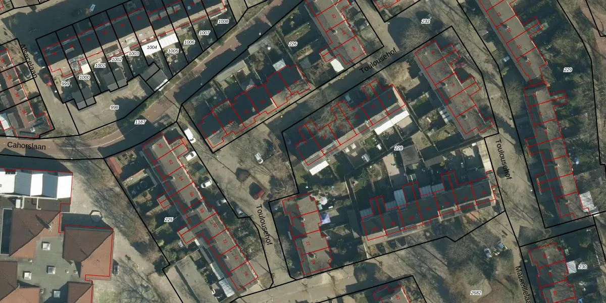 Toulousehof 21 is gelegen op kadastraal perceel WSL01S228. Deze kadastrale aanduiding is uniek en wordt gebruikt door het Kadaster om eigendomsrechten en andere zakelijke rechten vast te leggen. Het perceel maakt onderdeel uit van de kadastrale gemeente Woensel.