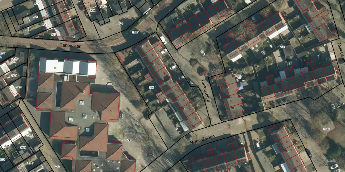 Toulousehof 68 is gelegen op kadastraal perceel WSL01S225. Deze kadastrale aanduiding is uniek en wordt gebruikt door het Kadaster om eigendomsrechten en andere zakelijke rechten vast te leggen. Het perceel maakt onderdeel uit van de kadastrale gemeente Woensel.