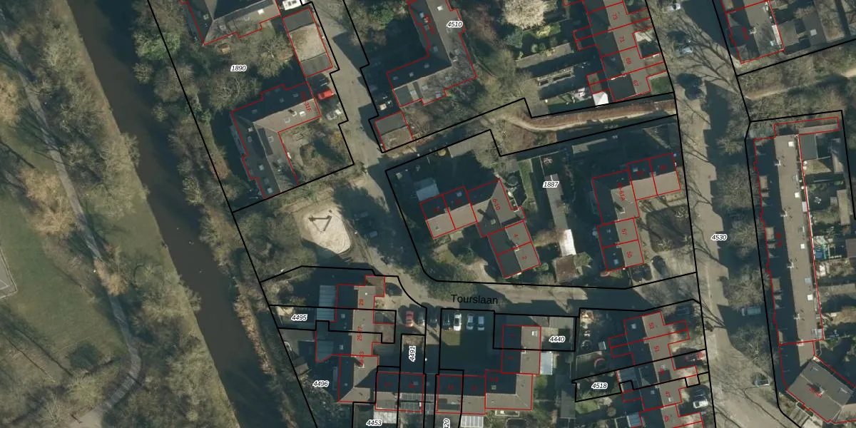 Tourslaan 14 is gelegen op kadastraal perceel WSL01S1887. Deze kadastrale aanduiding is uniek en wordt gebruikt door het Kadaster om eigendomsrechten en andere zakelijke rechten vast te leggen. Het perceel maakt onderdeel uit van de kadastrale gemeente Woensel.