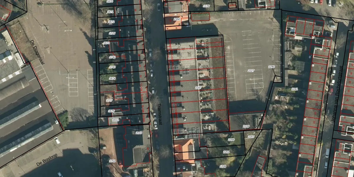 Tramstraat 21-17 is gelegen op kadastraal perceel EHV00C2167. Deze kadastrale aanduiding is uniek en wordt gebruikt door het Kadaster om eigendomsrechten en andere zakelijke rechten vast te leggen. Het perceel maakt onderdeel uit van de kadastrale gemeente Eindhoven.