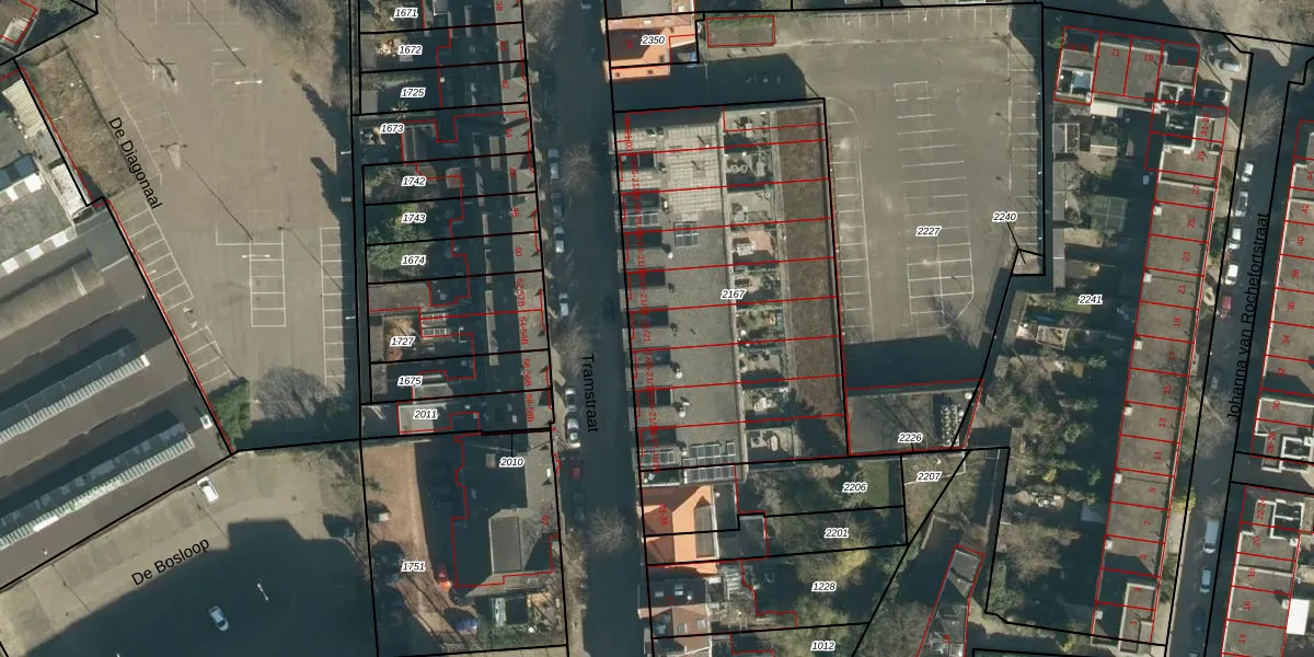 Tramstraat 21-21 is gelegen op kadastraal perceel EHV00C2167. Deze kadastrale aanduiding is uniek en wordt gebruikt door het Kadaster om eigendomsrechten en andere zakelijke rechten vast te leggen. Het perceel maakt onderdeel uit van de kadastrale gemeente Eindhoven.