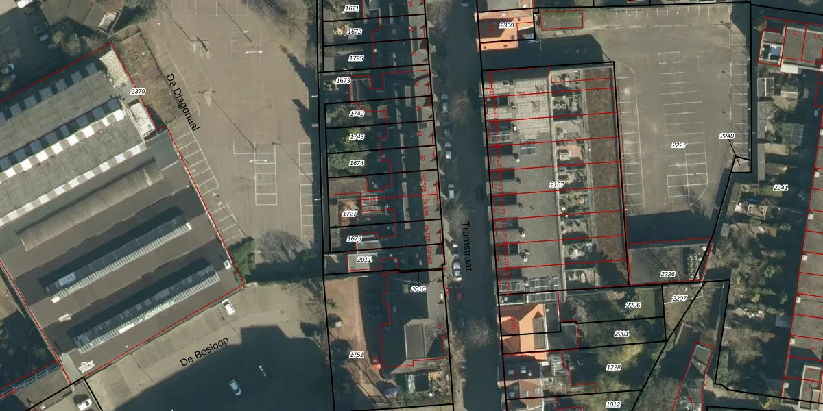 Tramstraat 54 is gelegen op kadastraal perceel EHV00C1727. Deze kadastrale aanduiding is uniek en wordt gebruikt door het Kadaster om eigendomsrechten en andere zakelijke rechten vast te leggen. Het perceel maakt onderdeel uit van de kadastrale gemeente Eindhoven.