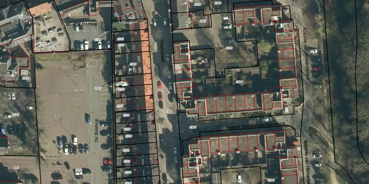 Tramstraat 9-A is gelegen op kadastraal perceel EHV00C1994. Deze kadastrale aanduiding is uniek en wordt gebruikt door het Kadaster om eigendomsrechten en andere zakelijke rechten vast te leggen. Het perceel maakt onderdeel uit van de kadastrale gemeente Eindhoven.