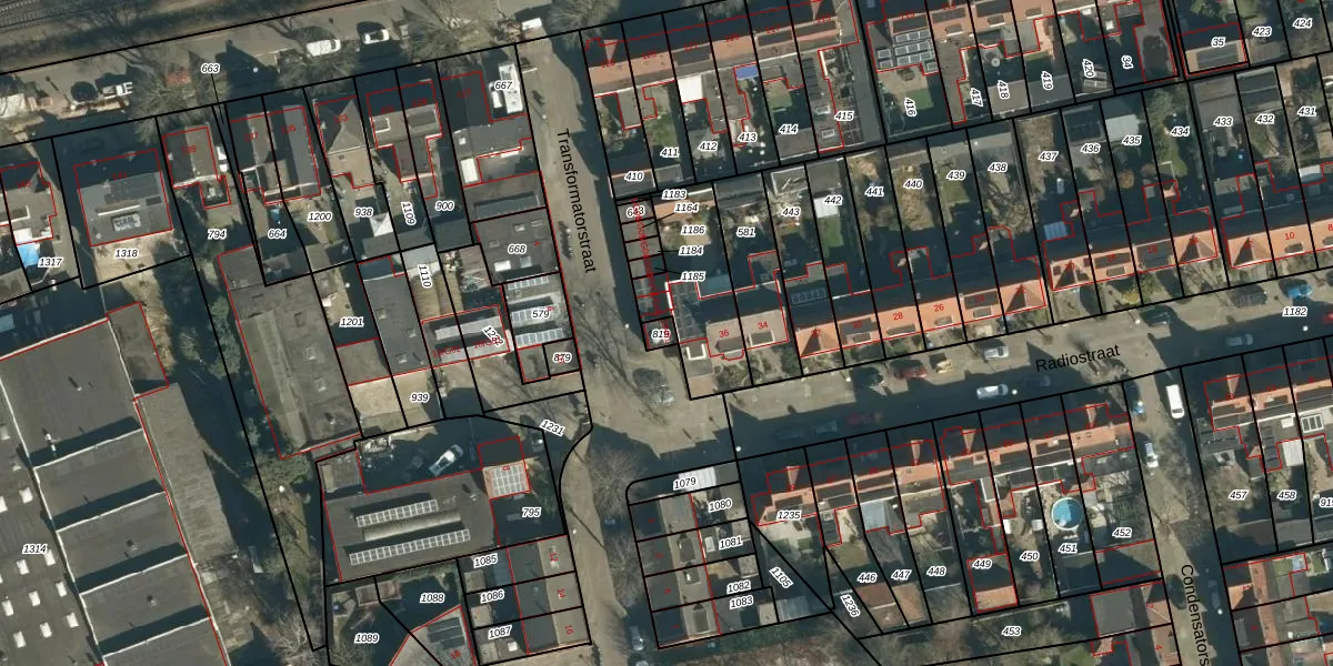 Gebruik de zoekbalk of klik op een perceel voor informatie over de adressen binnen dit perceel.