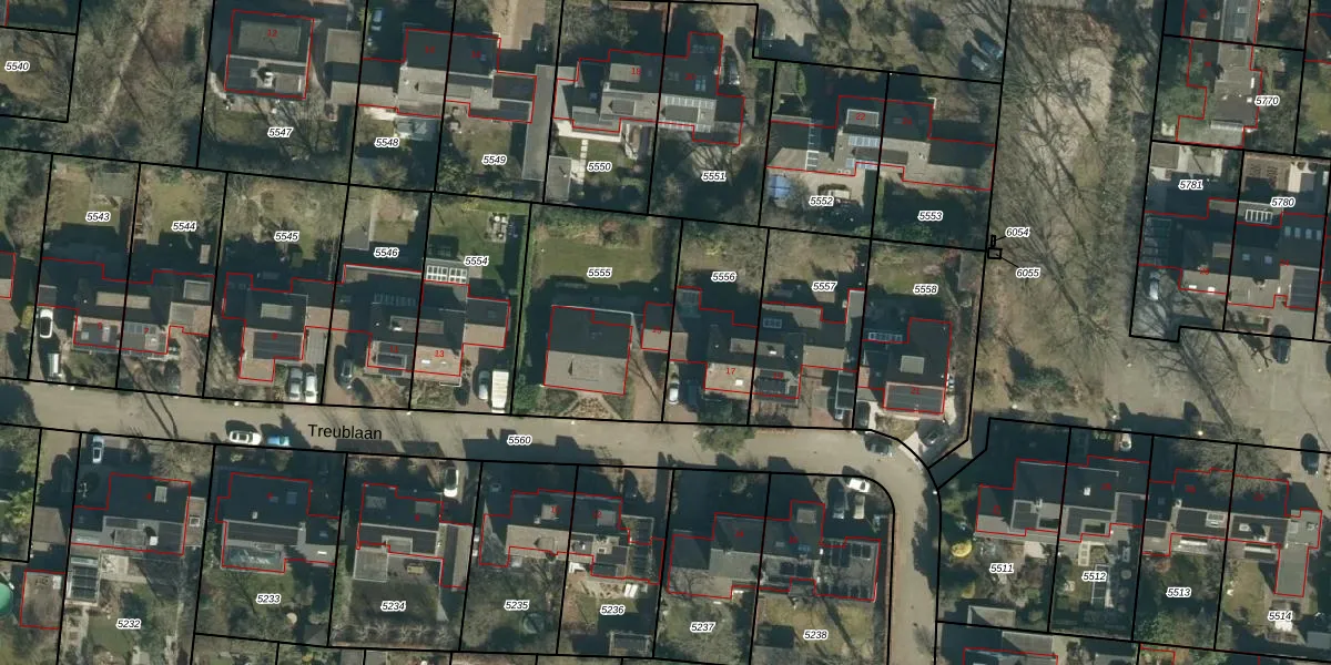 Treublaan 15 is gelegen op kadastraal perceel STM00D5555. Deze kadastrale aanduiding is uniek en wordt gebruikt door het Kadaster om eigendomsrechten en andere zakelijke rechten vast te leggen. Het perceel maakt onderdeel uit van de kadastrale gemeente Stratum.