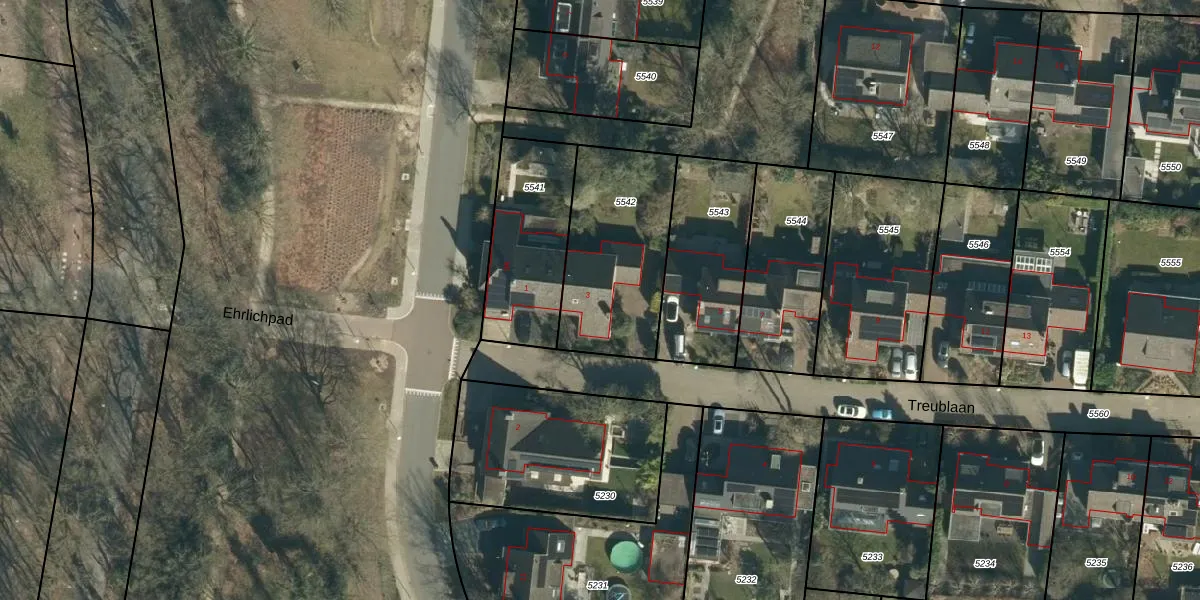 Gebruik de zoekbalk of klik op een perceel voor informatie over de adressen binnen dit perceel.