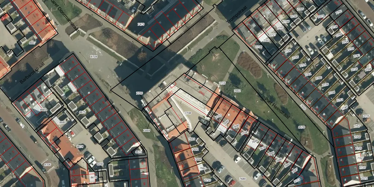 Het perceel waarop Trompstraat 41 staat heeft een oppervlakte van 361 m². Dit is een groot perceel. De perceeloppervlakte wordt geregistreerd door het Kadaster. Gedetailleerde informatie over de maten van dit perceel kunt u vinden in het rapport Kadastrale kaart met maatvoering van Trompstraat 41.