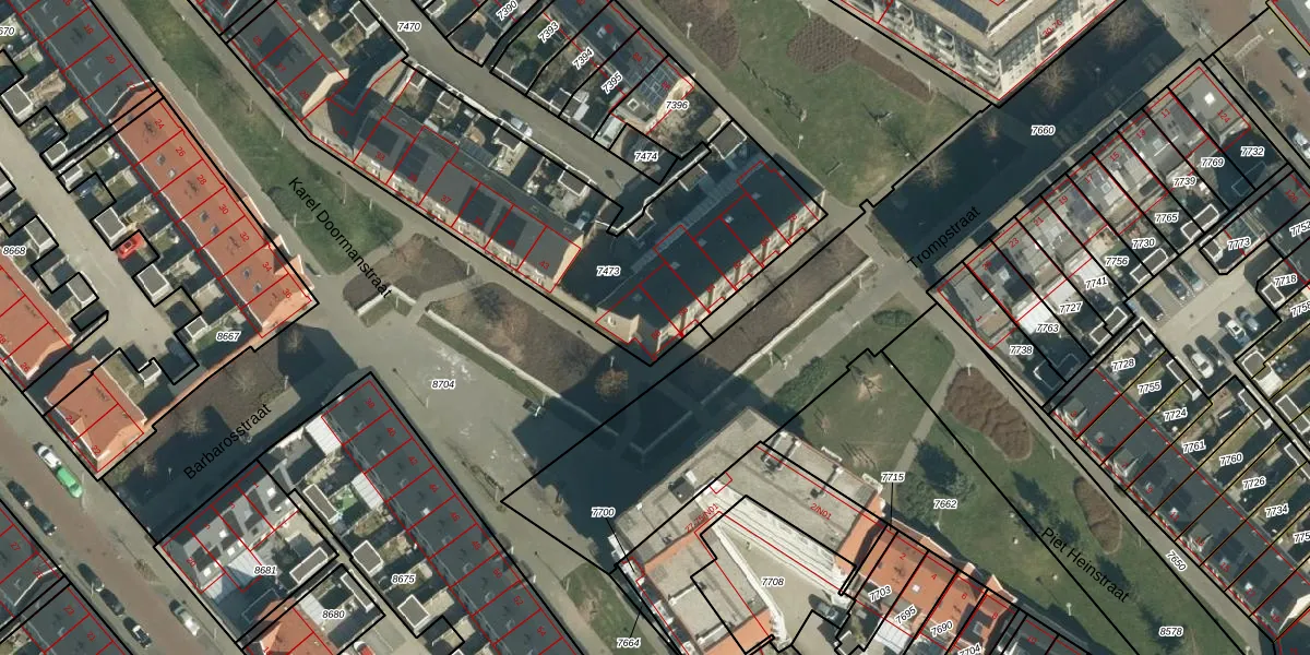 Het perceel waarop Trompstraat 88 staat heeft een oppervlakte van 1855 m². Dit is een zeer groot perceel. De perceeloppervlakte wordt geregistreerd door het Kadaster. Gedetailleerde informatie over de maten van dit perceel kunt u vinden in het rapport Kadastrale kaart met maatvoering van Trompstraat 88.