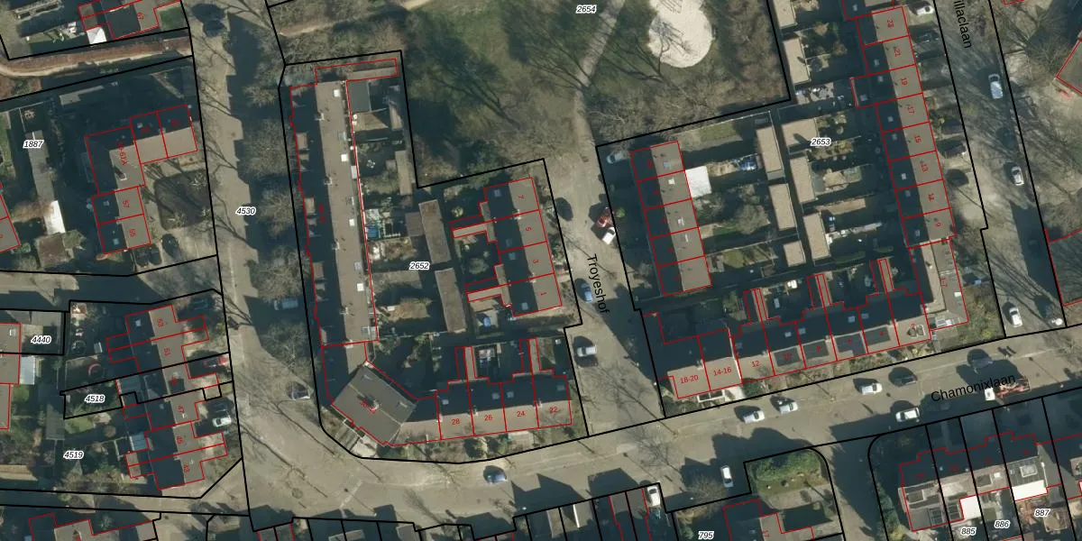 Troyeshof 3 is gelegen op kadastraal perceel WSL01S2652. Deze kadastrale aanduiding is uniek en wordt gebruikt door het Kadaster om eigendomsrechten en andere zakelijke rechten vast te leggen. Het perceel maakt onderdeel uit van de kadastrale gemeente Woensel.