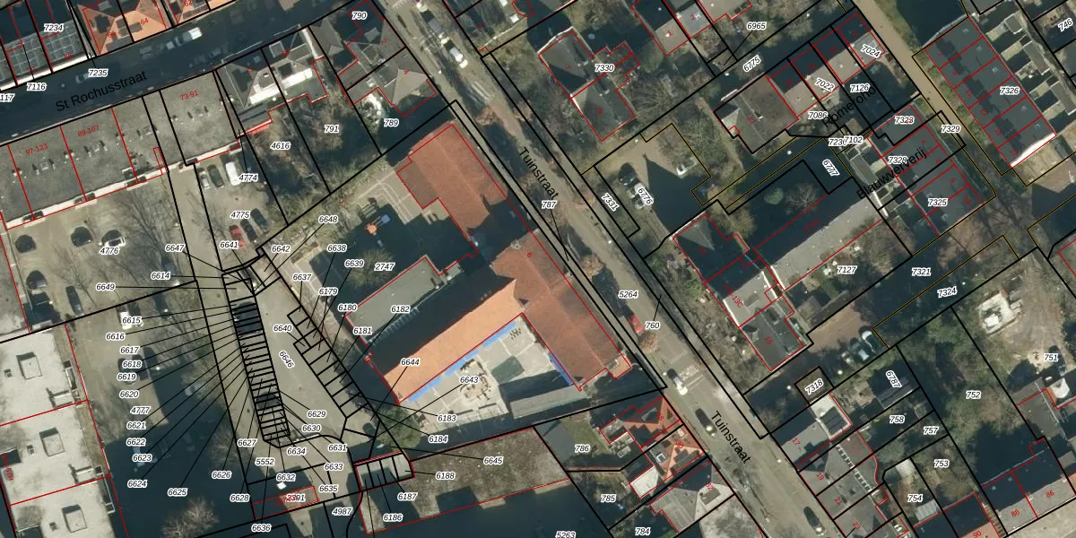 Het perceel waarop Tuinstraat 6 staat heeft een oppervlakte van 2544 m². Dit is een zeer groot perceel. De perceeloppervlakte wordt geregistreerd door het Kadaster. Gedetailleerde informatie over de maten van dit perceel kunt u vinden in het rapport Kadastrale kaart met maatvoering van Tuinstraat 6.