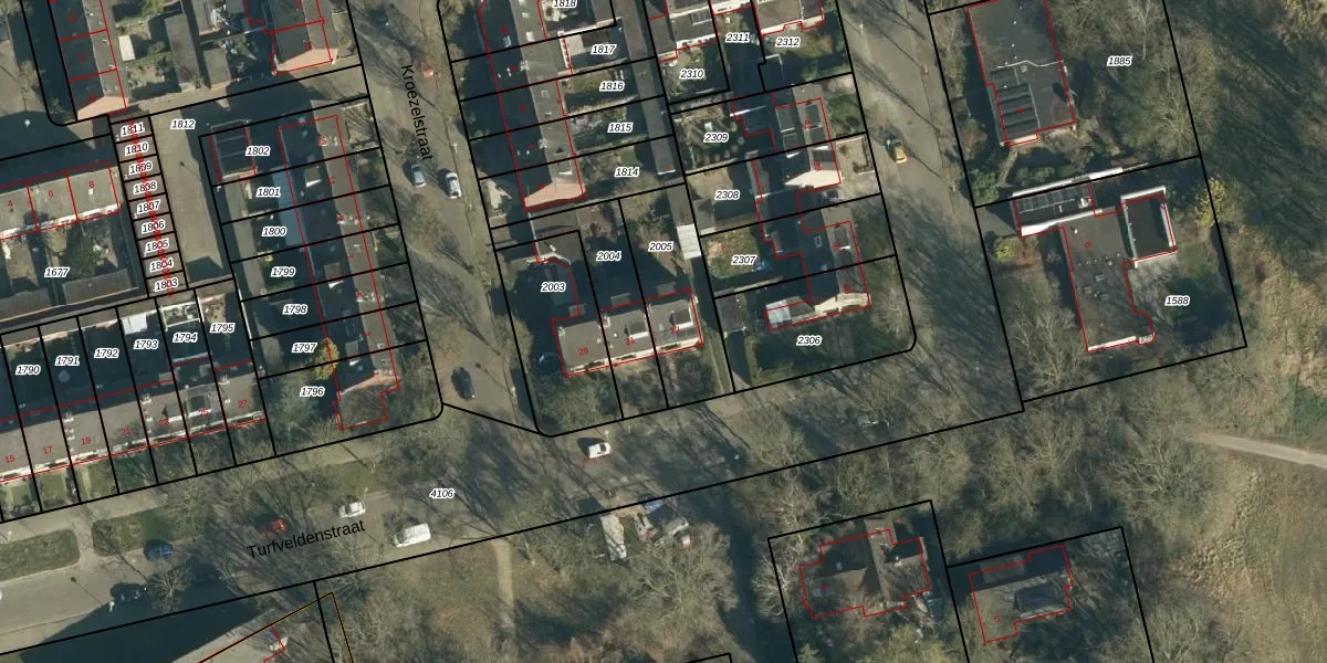 Turfveldenstraat 33 is gelegen op kadastraal perceel WSL01C2005. Deze kadastrale aanduiding is uniek en wordt gebruikt door het Kadaster om eigendomsrechten en andere zakelijke rechten vast te leggen. Het perceel maakt onderdeel uit van de kadastrale gemeente Woensel.